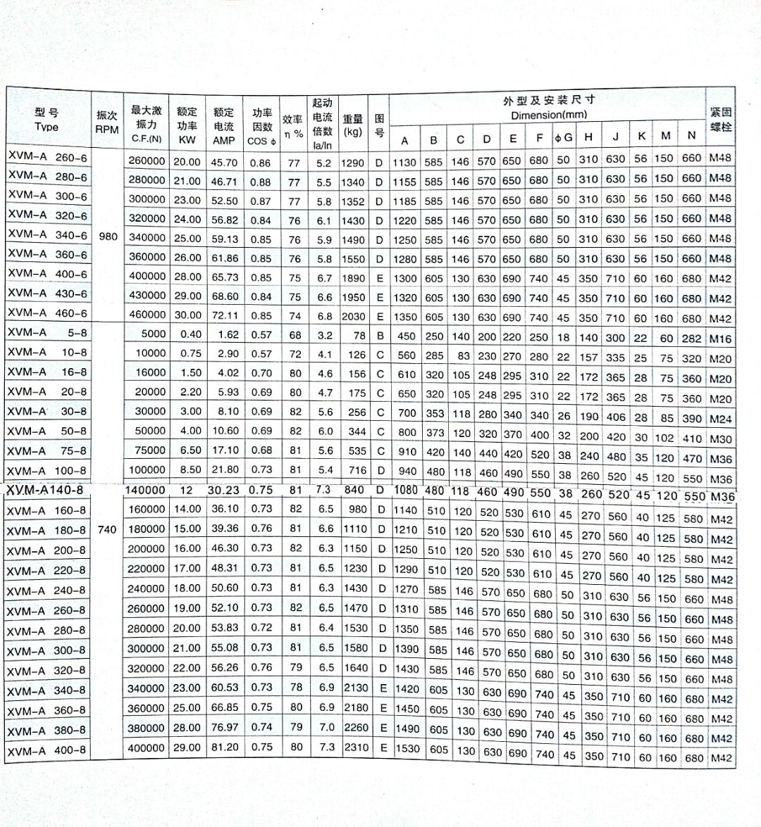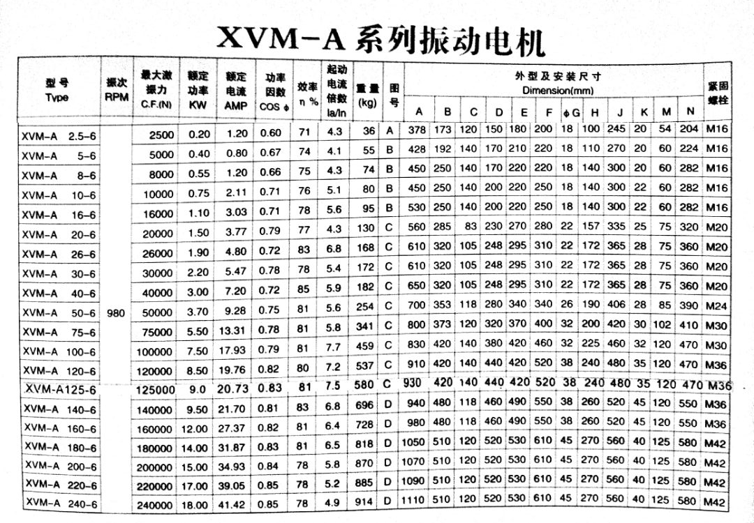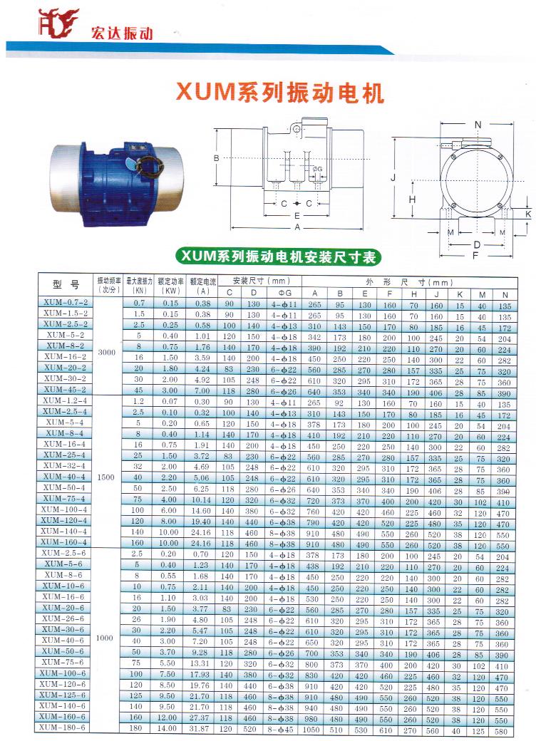 三、XVM-A振動(dòng)電機(jī)的技術(shù)參數(shù):