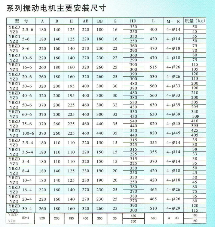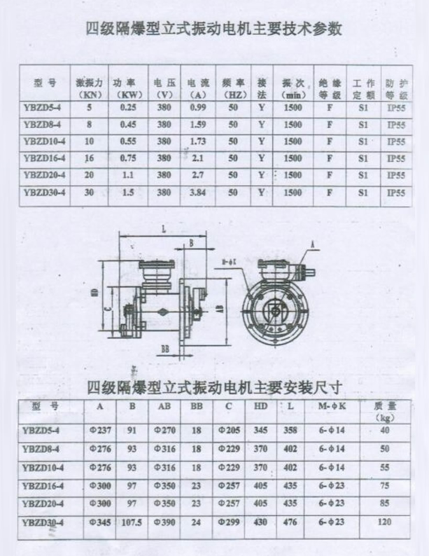 YBZD系列戶外隔爆型振動三相異步電動機(簡稱防爆型振動電機),其工作原理和通用型振動電機類似,是利用兩端的偏心塊高速旋轉產生振動力作為振動源。該系列防爆振動電機具有設計合理、結構緊湊、激振效率高、節能、壽命長、運行可靠、安裝調試方便等優點。可作為振動料斗、振動篩、圓振篩、振動給料機、振動輸送機的要求防爆環境工作振動源。其防爆性能符合GB3836.2-2000《爆炸性氣體環境用電氣設備——隔爆型”d"》。防爆標志為ExdⅡBT4,使用于Ⅱ類A、B級T1~T4組可燃性氣體或蒸汽與空氣形成的爆炸性混合物的場所。